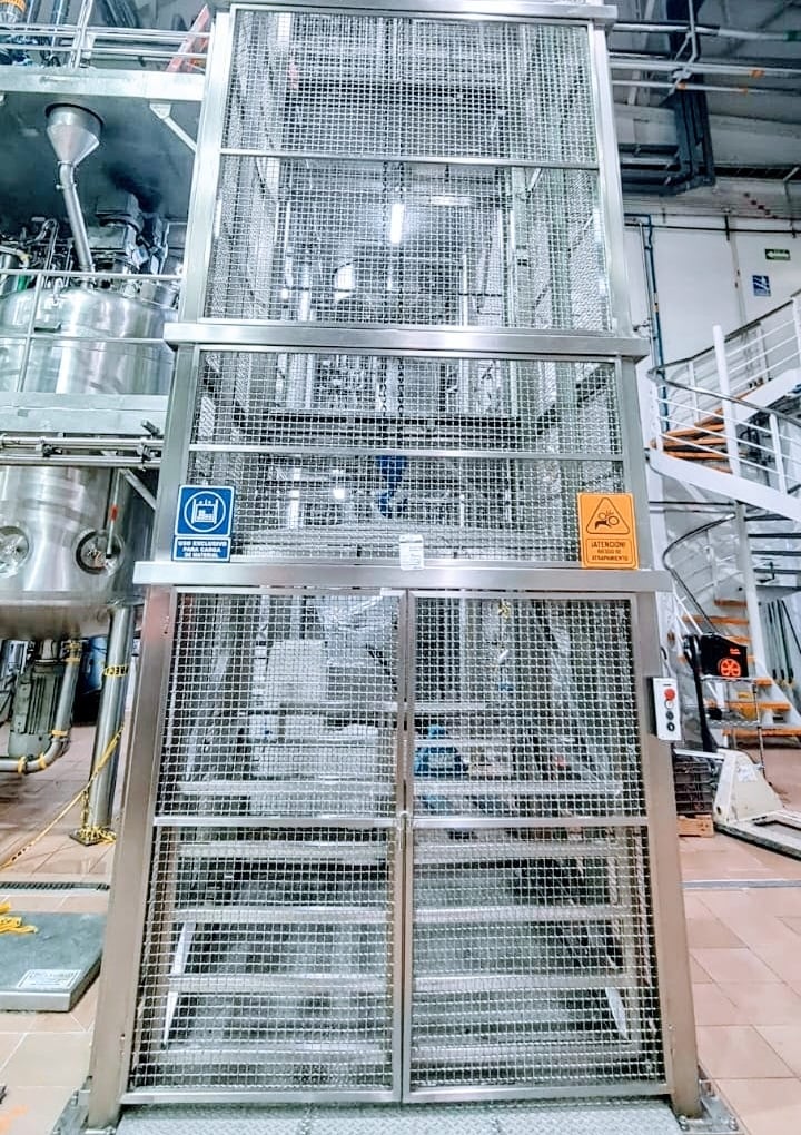 Elevador de carga en acero inoxidable.
